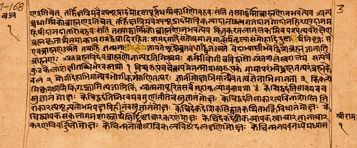 In den 108 Schriften findet man Texte in Versen und solche ohne. In den Upanishaden ist beschrieben, was Brahman ist, nämlich die Weltseele, die höchste Wirklichkeit. Wenn der Mensch das erreicht, kann er aus dem Kreislauf von Leben und Tod und somit dem Leid ausbrechen. Was man denkt und wie man handelt, bestimmt dabei das eigene Karma.
