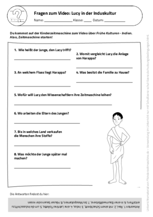 Wir bieten hier verschiedene Arbeitsblätter an mit Rätseln und Ausmalbildern, Quiz und Lückentext. Auch das Video von Lucys Begegnung mit einem Jungen aus der Harappakultur steht hier zum Download bereit! Außerdem findest du hier unsere Karten, auf denen du siehst, welche Kultur wo auf dem indischen Subkontinent lebte. Viel Spaß!