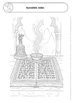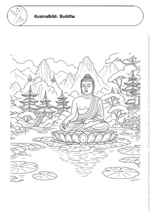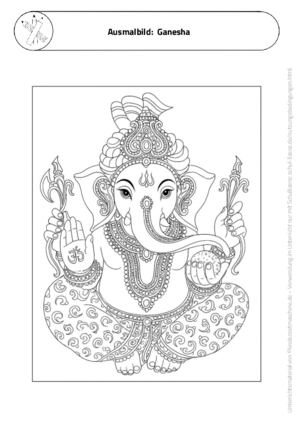Hier findest du verschiedene Ausmalbilder zum Thema Indien und Induskultur, darunter auch Buddha und Ganesha.