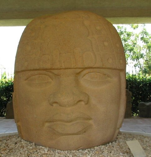 Typisch für die Olmeken war das Anfertigen von riesigen Köpfen aus Stein. Vermutlich stellen diese Steinköpfe Herrscher der Olmeken dar. Insgesamt hat man bis jetzt 17 Köpfe gefunden. Diese Riesenköpfe sind zwischen 1,50 und 3,40 Meter hoch. Die meisten Köpfe wiegen zwischen 6 und 25 Tonnen. Das ist so viel wie ein bis vier ausgewachsene Elefanten! Ein Riesenkopf wiegt geschätzt sogar 38 Tonnen! Die großen Skulpturen zeigen, dass die Olmeken Meister waren in der Bearbeitung von Stein.