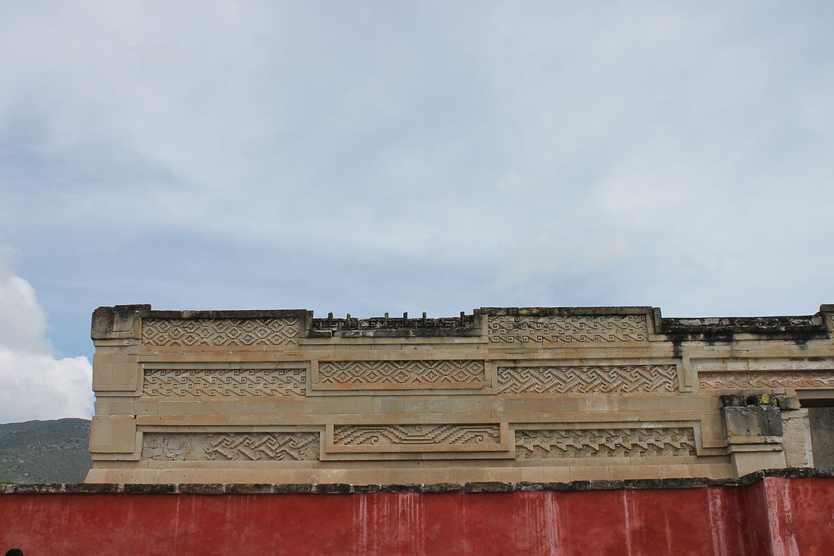 Mehrere Friese unter- und nebeneinander wurden aus unzähligen Steinen exakt gearbeitet. An einem Gebäude wurden bis zu 100.000 Steine verarbeitet. Diese Muster sind typisch für Mitla. Sie werden auch "grecas" genannt.